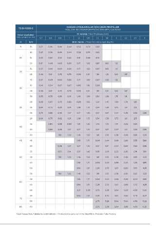 H B/H Birim Ağırlık / Mass Per Unit Length (kg/m) H B/H Birim Ağırlık / Mass Per Unit Length (kg/m)
