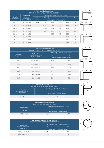 L / Z / T KESİTLİ PROFİLLER Ağırlık (kg/m) - Weight (kg/m)