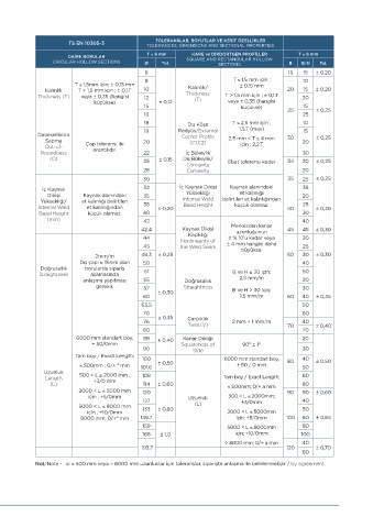Çapın kalınlığa oranı 100’den Sapma Çap toleransı ile 20 Corner Profile 2,5 mm < T ≤ 4 mm 30 20 ± 0,25