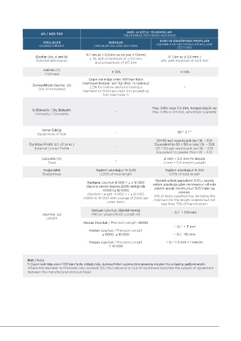 Kalınlık (T) Et kalınlığının % 10 ‘ u kadar (± 0,10.T) Rastgele Uzunluk 4 000 < L ≤ 16 000 edilen uzunluğa göre minimumun altında