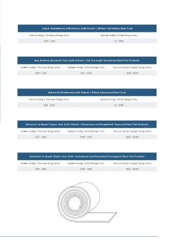 PRODUCTION RANGE Kalınlık Aralığı | Thickness Range (mm) Genişlik Aralığı | Width Range (mm)