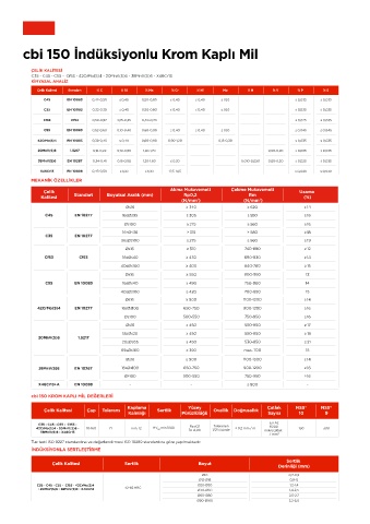 cbi 150 KROM KAPLI MİL DEĞERLERİ