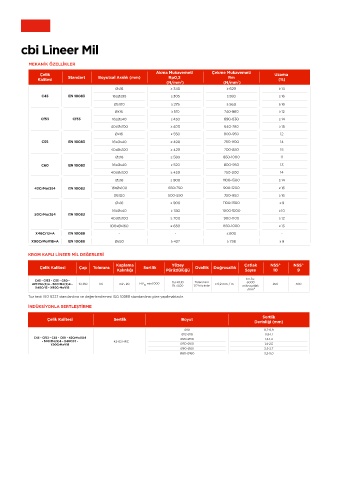 KROM KAPLI LİNEER MİL DEĞERLERİ